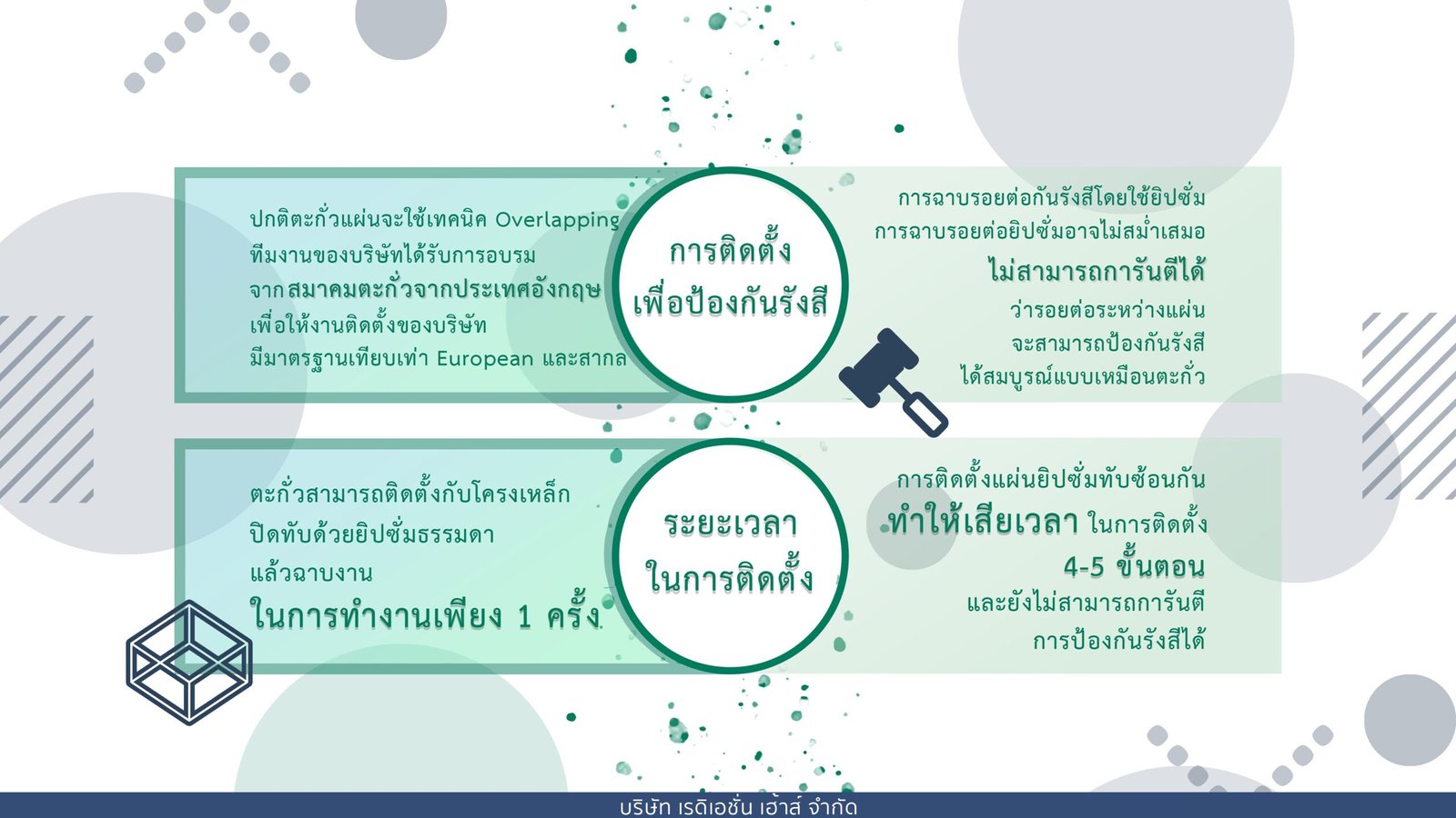 4. อันดับหนึ่งเรื่องความเร็วและมาตรฐานในการติดตั้ง บริษัทเราเป็นเพียงบริษัทเดียวในประเทศที่ควบคุมสินค้า จากต้นน้ำสู่มือลูกค้า ทำให้สามารถควบคุมความเร็วในงานสั่งผลิตได้ตามต้องการ ประกอบกับมาตรฐานการติดตั้งตามมาตรฐานประเทศอังกฤษ ทำให้เราสามารถทำงานได้อย่างรวดเร็วที่สุด โดยไม่ได้ละเลยมาตรฐานระดับสากล